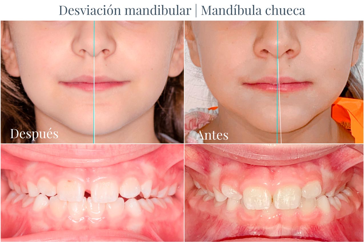 Es interesante descubrir que la mayor parte de las personas que presentan una mandíbula desviada también tienen la mordida alterada y desviada.